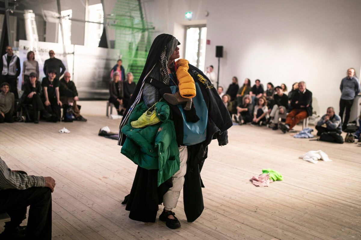 Undressing roles becomes a moment of collective attention and renegotiating assigned categories. The performance seeks to uncover clothing’s ability to shape the body – both architecturally and symbolically. Eventually, the audience becomes part of a shared gesture of dressing and undressing, a collective play of decoding through clothes.